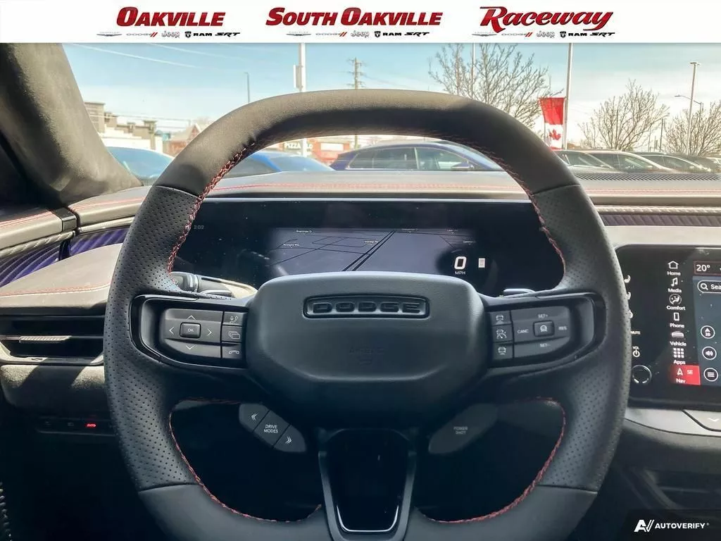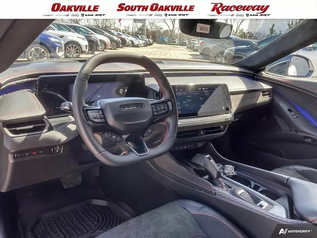 This particular example is a Scat Pack. The entry-level Charger Daytona starts at CA$53,995 (US 39,500) in Canada, and is available with Scat Pack that adds CA$26,905 (US 19,700), bringing the base price to CA$80,300 (US 59,200) without any further packages. Twin motors deliver power of 670 hp and 627 lb-ft (850 Nm) and the option list includes a 16-inch digital.