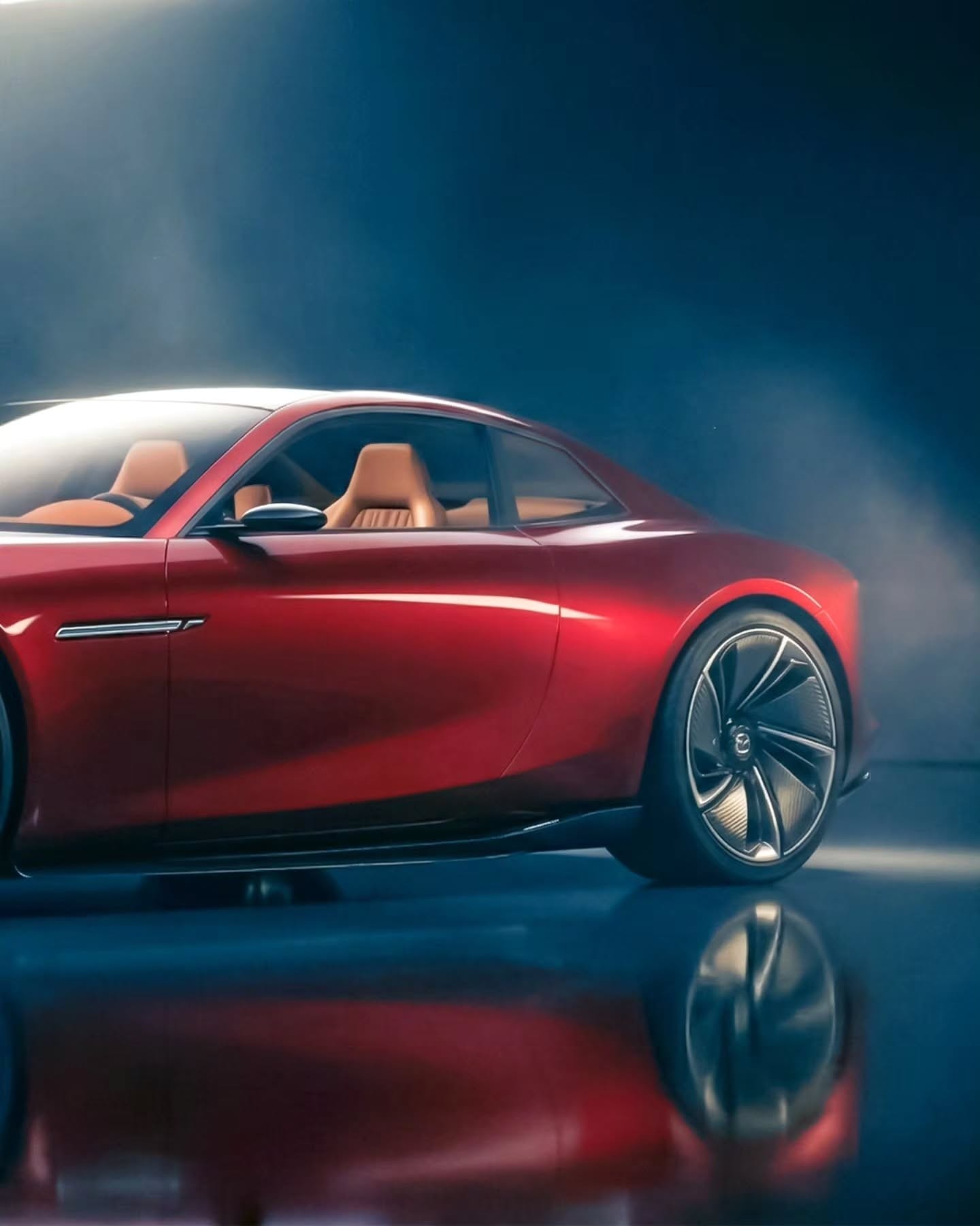 The RX-7 proposal moves in another direction. Serafini says the front section takes influence from the Mazda Iconic SP and also follows what he calls the spirit of the rotary engine. His interpretation arrives first as a grand touring coupe, with two doors and a 2+2 cabin layout.