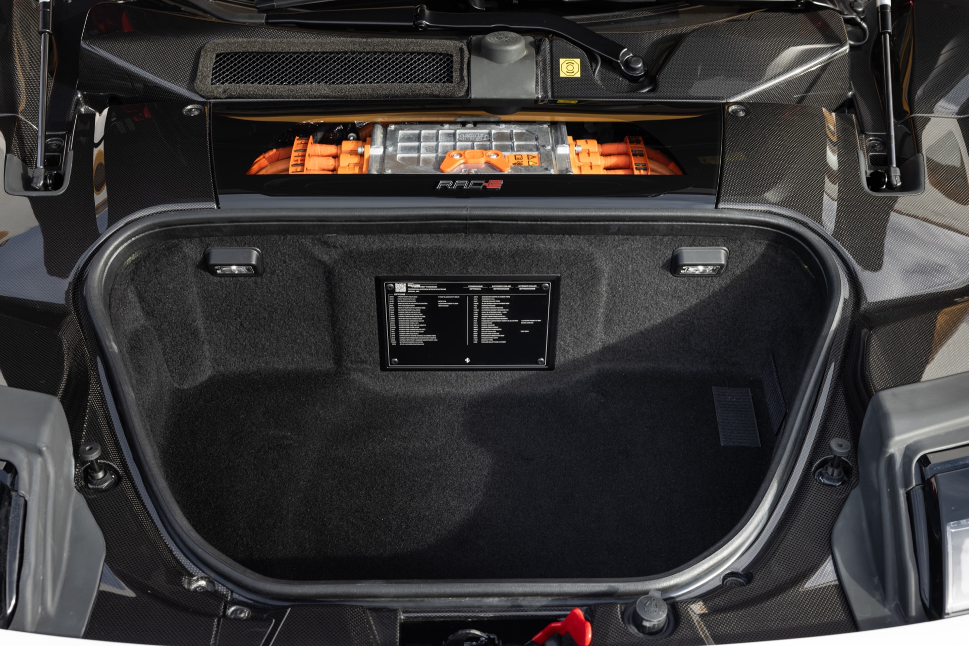 One can see Alcantara and carbon fiber throughout, and bucket seats installed. However, the interior doesn’t feel luxurious in a traditional sense, as it is meant to be purposeful, clear, and easy to understand, even when driving at high speeds.