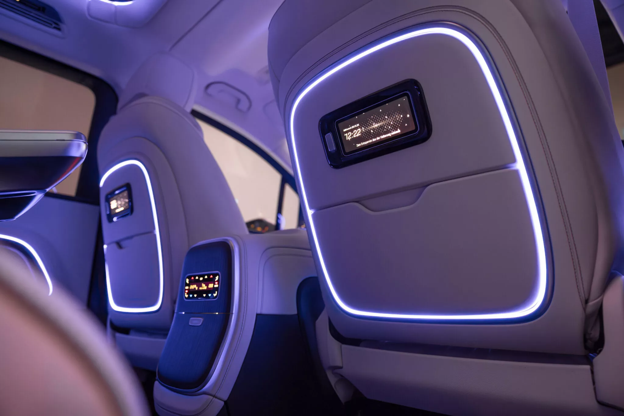 Rear occupants can really enjoy the ride thanks to a 31.3-inch panoramic display that folds down from the headliner. That setup brings 8K resolution, split-screen capability, and even an eight-megapixel camera for teleconferencing.